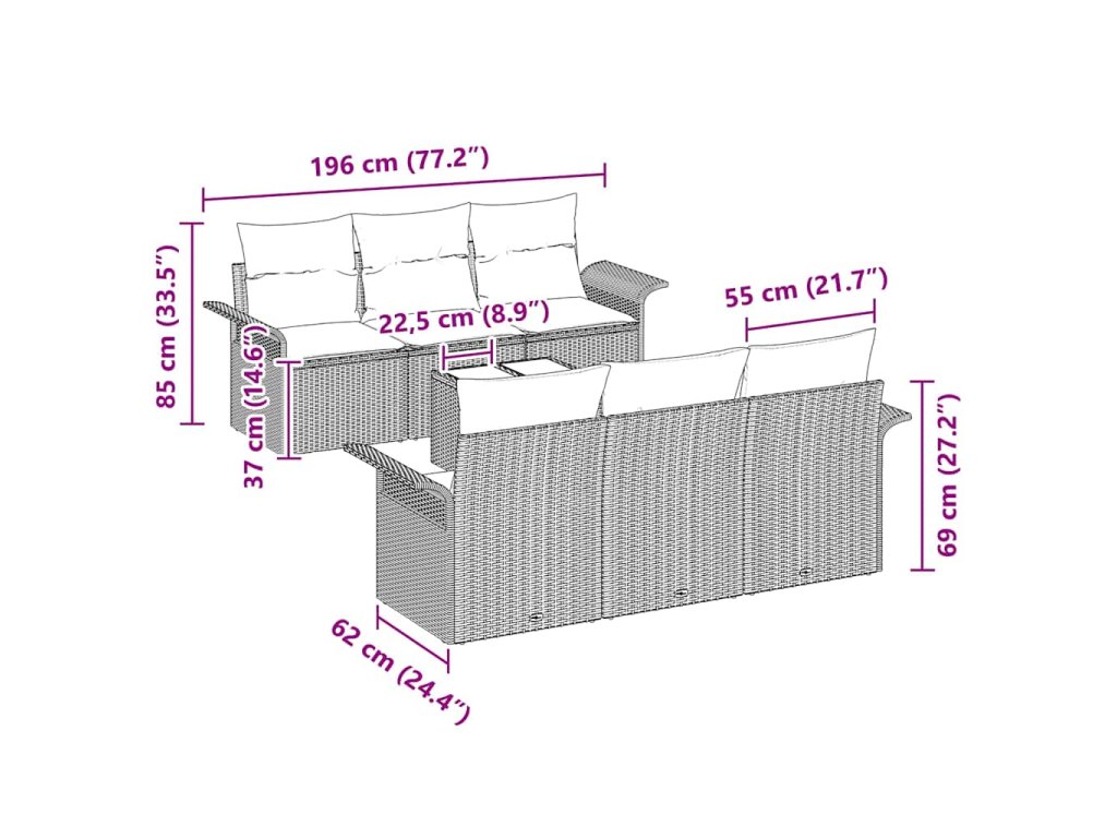 - Prémiový polyratan: Tento modulární zahradní sofa set vyrobený z kvalitního polyratanu má krásný vzhled a odolnou konstrukci, která zůstává v perfektní kondici i při špatném počasí. Polyratan je nenáročný na údržbu a dává široké možnosti pro moderní venkovní prostor.