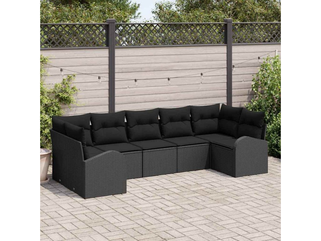 Sada zahradních pohovek s polštářem 7 pcs Černá polyratan 3354862