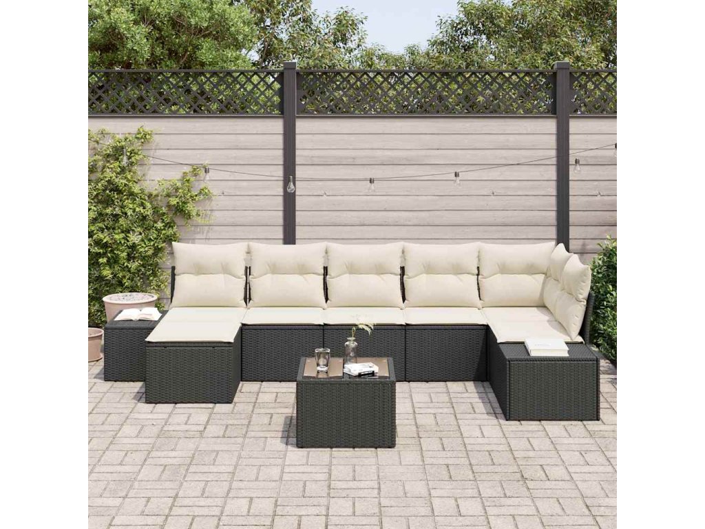 Sada zahradních pohovek s polštářem 7 pcs Černá polyratan 3355826