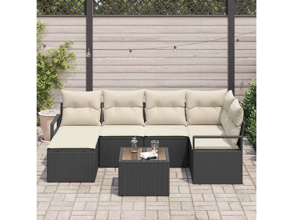 Sada zahradních pohovek s polštářem 7 pcs Hnědá a krémová 3355126