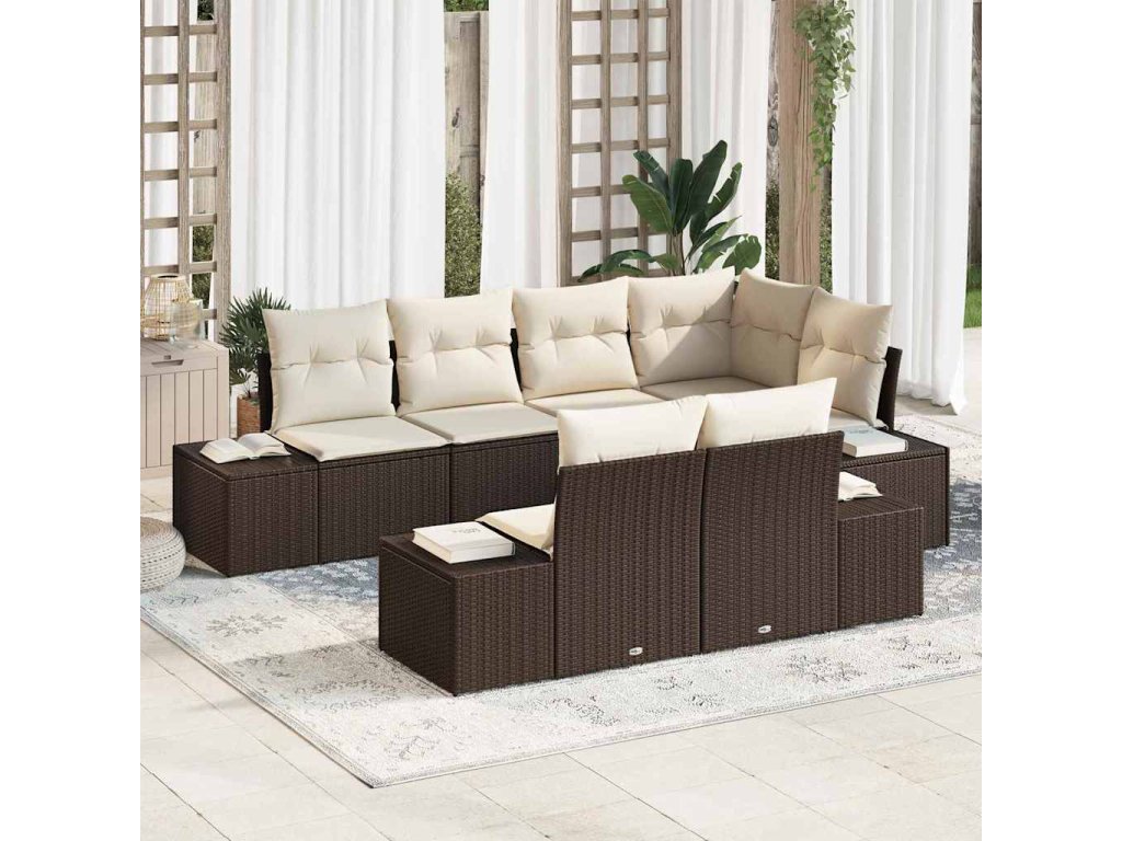 Sada zahradních pohovek s polštářem 7 pcs Hnědá a krémová 3355767