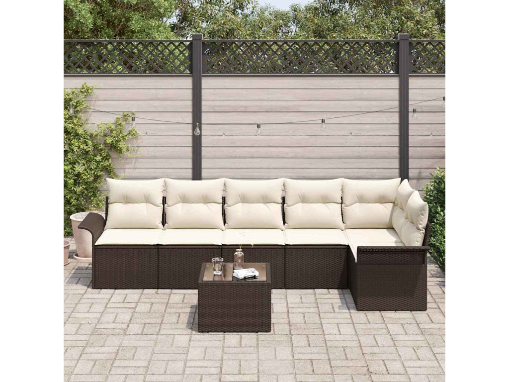 Sada zahradních pohovek s polštářem 7 pcs Hnědá Poly ratan 3345388