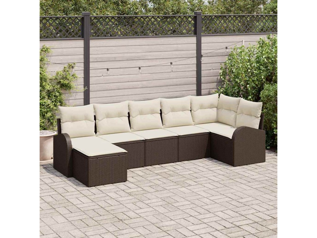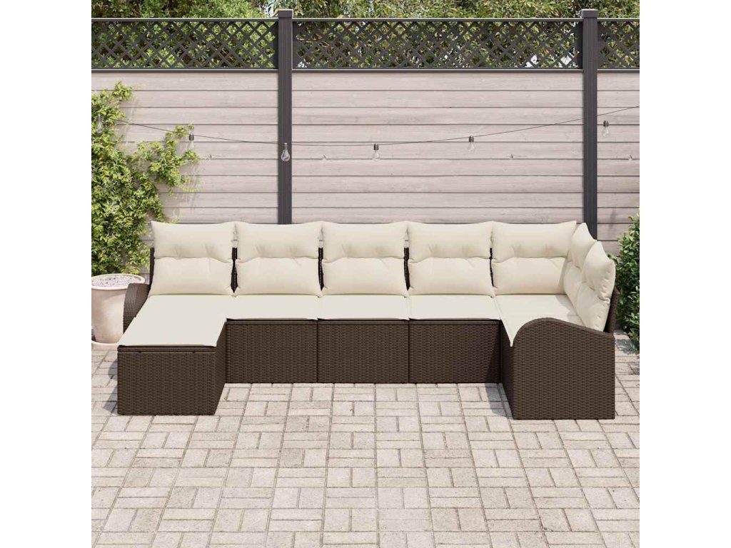 Sada zahradních pohovek s polštářem 7 pcs Hnědá Poly ratan 3346128