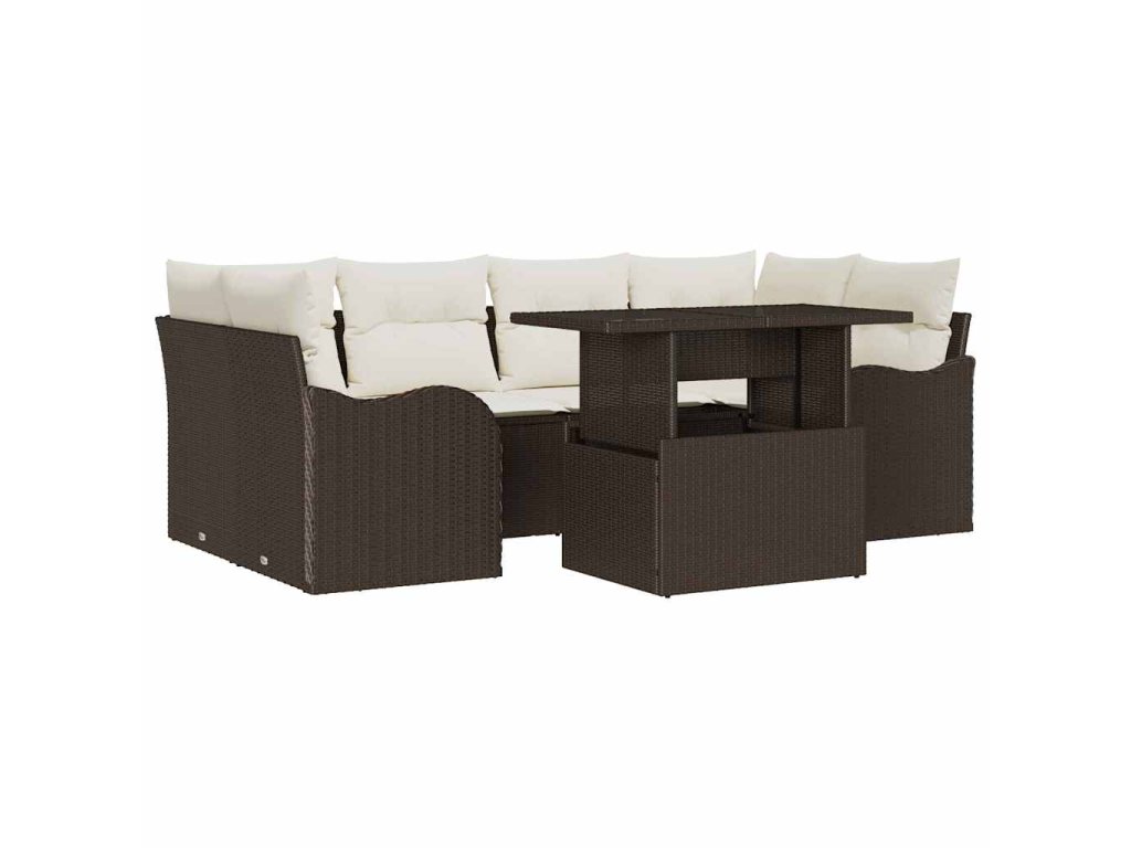 Sada zahradních pohovek s polštářem 7 pcs Hnědá Poly ratan 3348394