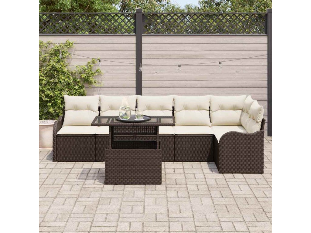 Sada zahradních pohovek s polštářem 7 pcs Hnědá Poly ratan 3348474