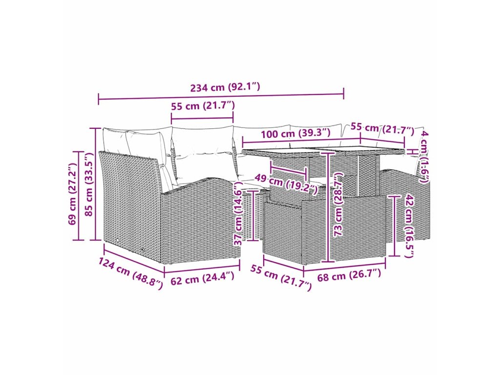 Tahle moderní zahradní pohovková sada přináší styl a funkčnost do vašich venkovních prostorů, jako jsou zahrady a terasy. Její modulární design dává možnost různě si poskládat sezení podle potřeby. S elegantním stylem a tkanou strukturou, tenhle venkovní nábytek dodá každému prostoru dotek elegance a je ideální pro odpočinek i slavnosti.