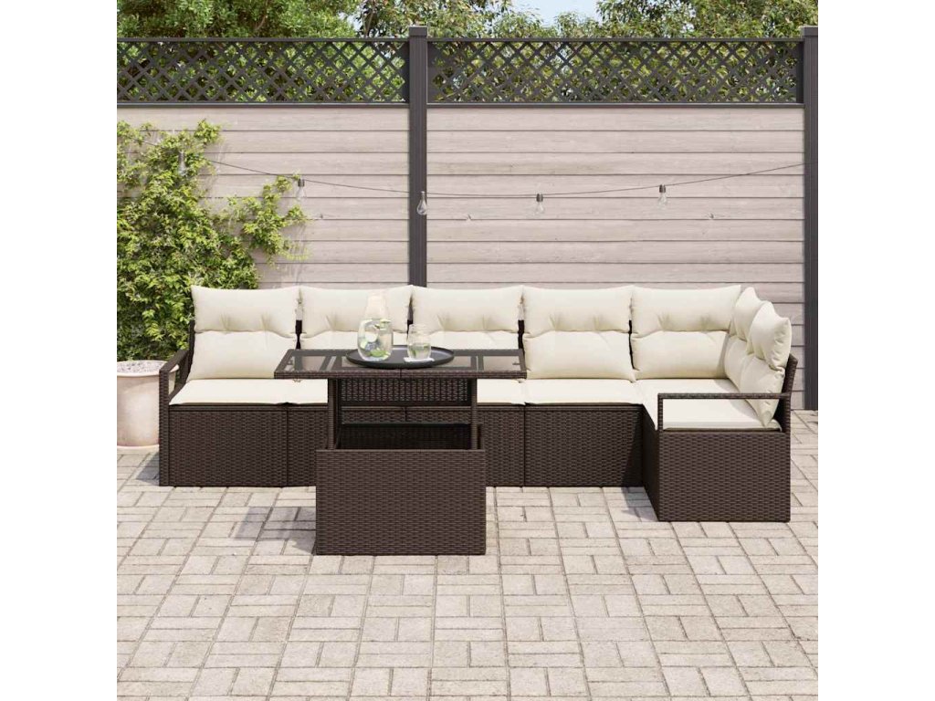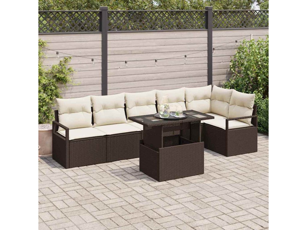 Sada zahradních pohovek s polštářem 7 pcs Hnědá Poly ratan 3348834