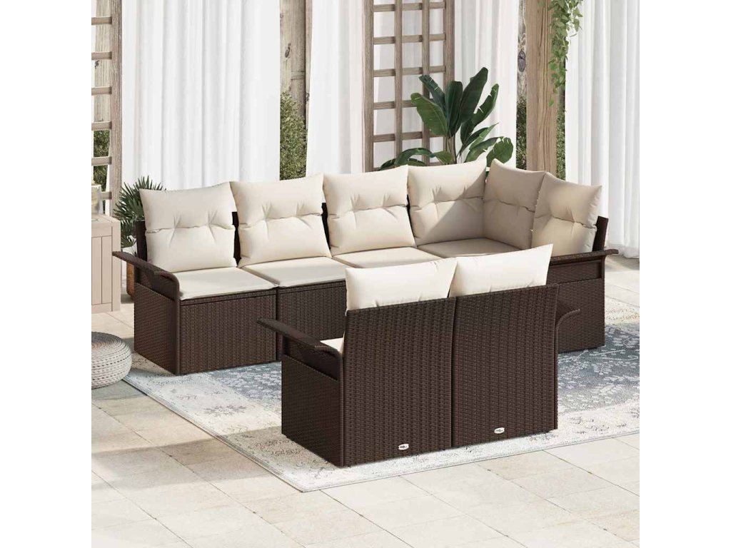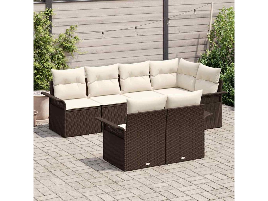 Sada zahradních pohovek s polštářem 7 pcs Hnědá Poly ratan 3354067