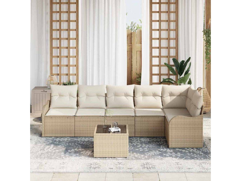 Sada zahradních pohovek s polštářem 7 pcs Hnědá Poly ratan 3354400