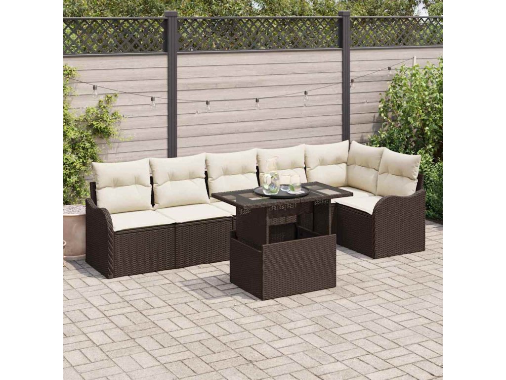 Sada zahradních pohovek s polštářem 7 pcs Hnědá Poly Ratan 3357211