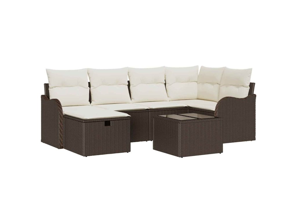 Sada zahradních pohovek s polštářem 7 pcs Hnědá Poly ratan 3360319