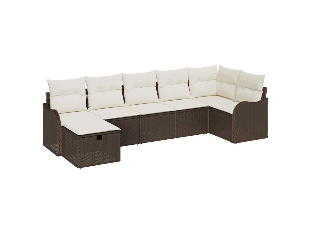 Sada zahradních pohovek s polštářem 7 pcs Hnědá Poly ratan 3360329