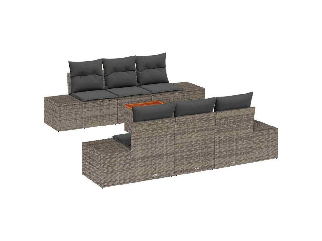 Sada zahradních pohovek s polštářem 7 pcs Šedá Poly ratan 3347902
