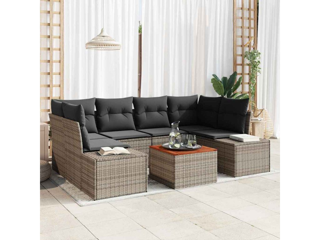 Sada zahradních pohovek s polštářem 7 pcs Šedá Poly ratan 3347909