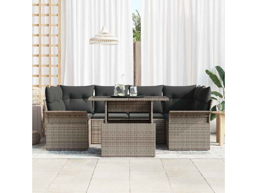 Sada zahradních pohovek s polštářem 7 pcs Šedá Poly ratan 3348215