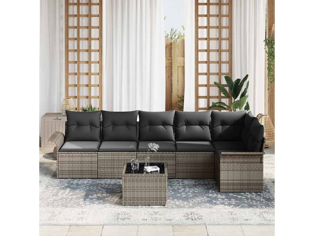 Sada zahradních pohovek s polštářem 7 pcs Šedá Poly ratan 3354058