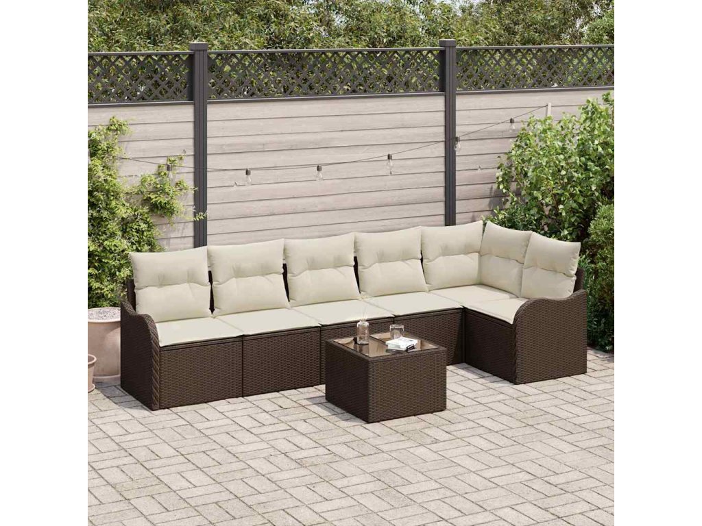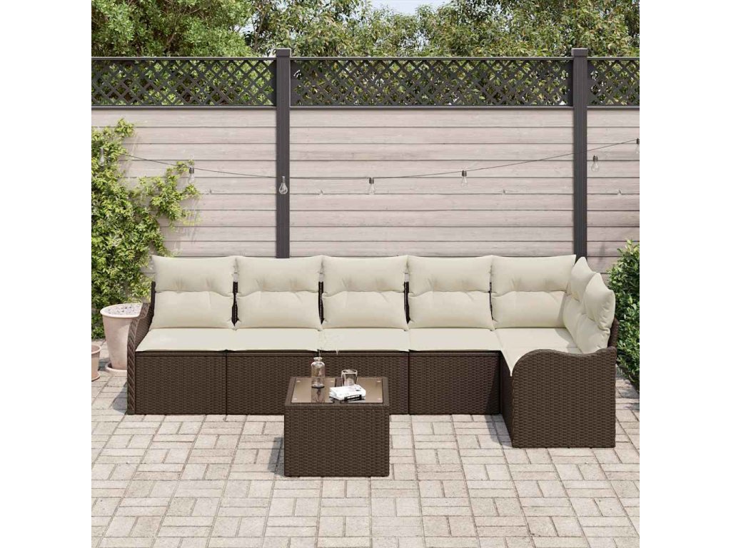 Sada zahradních pohovek s polštářem 7 pcs Šedá Poly ratan 3354397