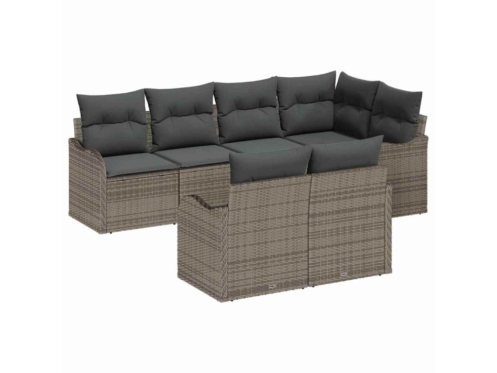 Sada zahradních pohovek s polštářem 7 pcs Šedá Poly ratan 3354408