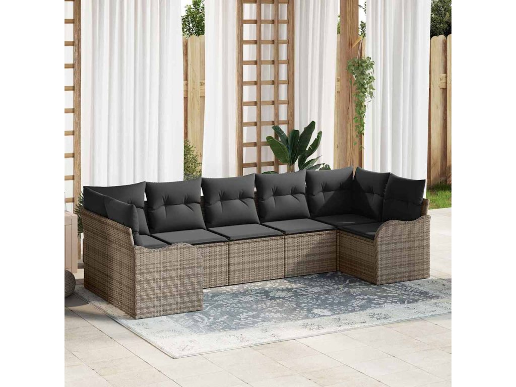 Sada zahradních pohovek s polštářem 7 pcs Šedá Poly ratan 3354518
