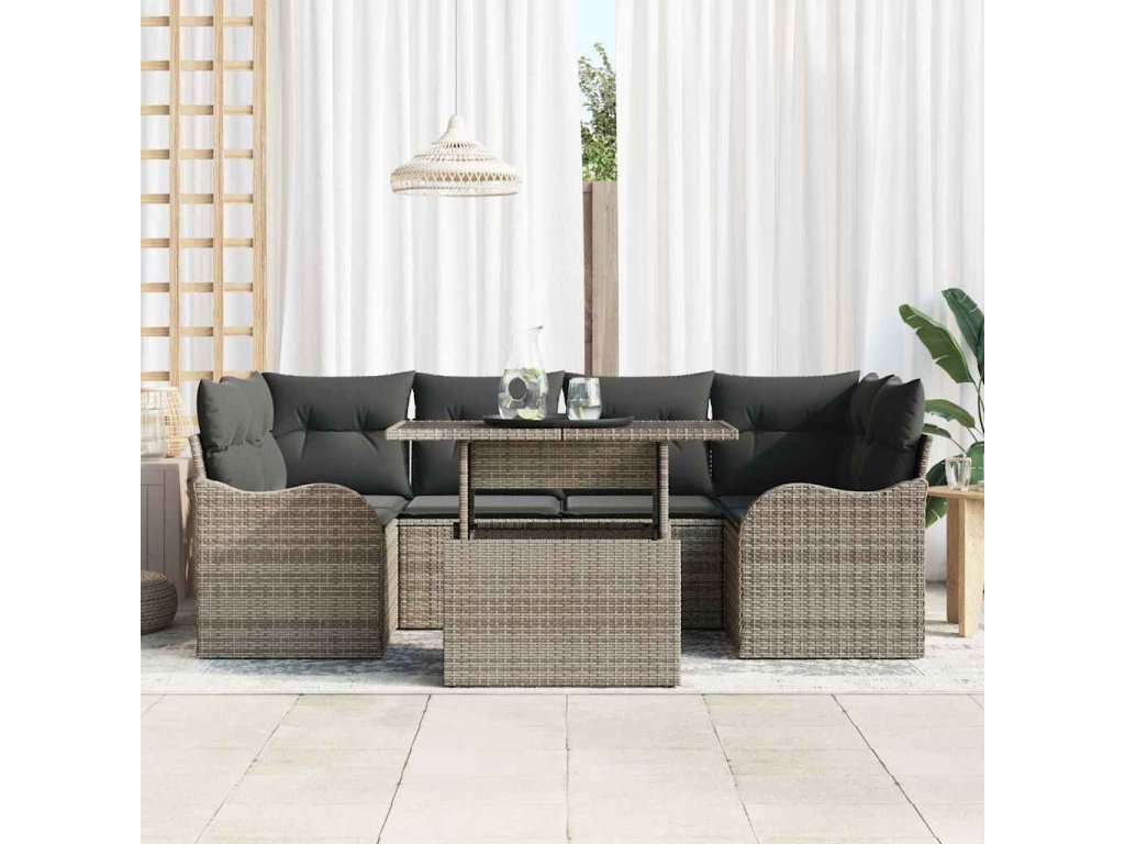 Sada zahradních pohovek s polštářem 7 pcs Šedá Poly Ratan 3357132