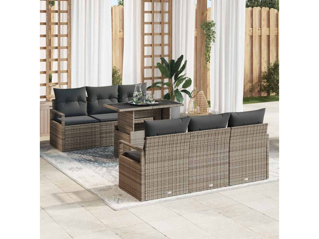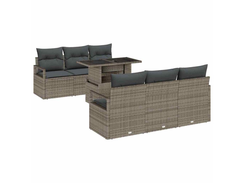 Sada zahradních pohovek s polštářem 7 pcs Šedá Poly ratan 3357482