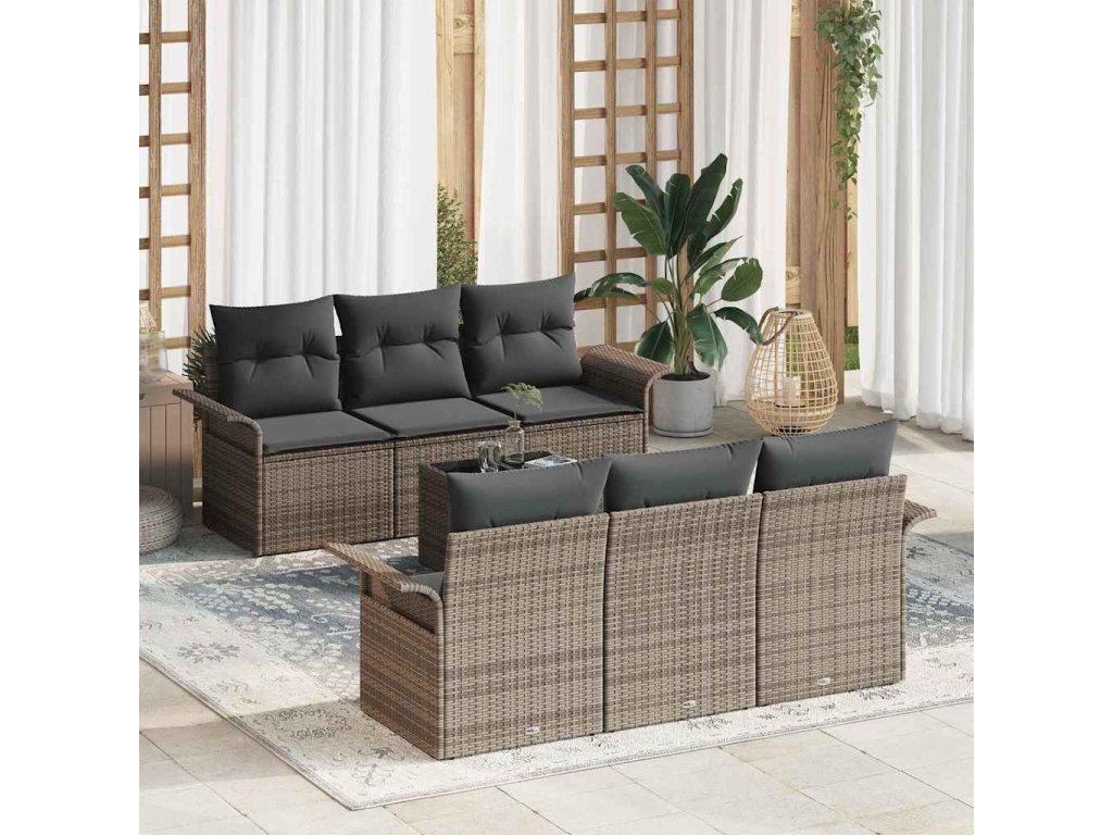 Sada zahradních pohovek s polštářem 7 pcs Šedá polyratan 3345249