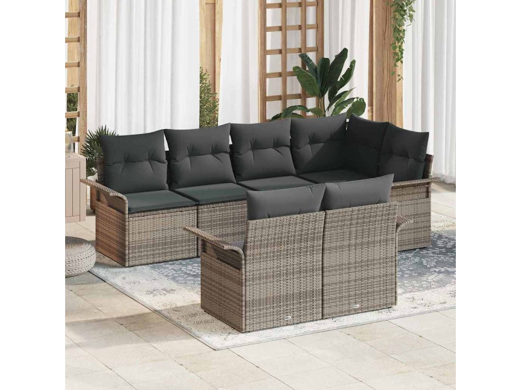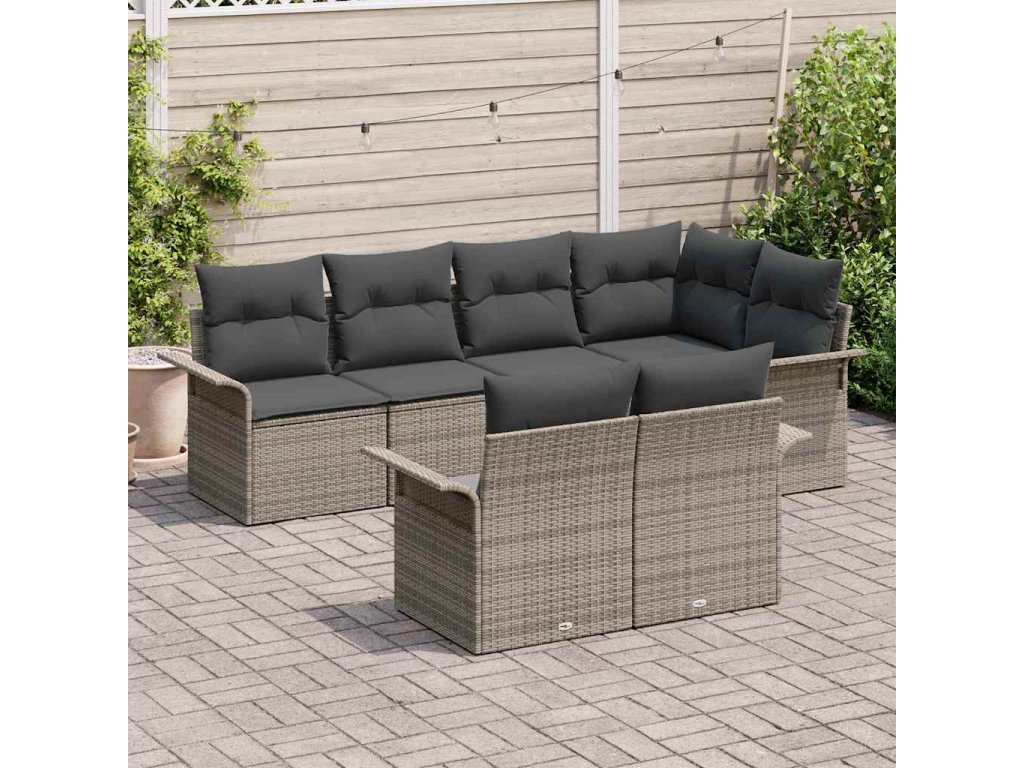 Sada zahradních pohovek s polštářem 7 pcs Šedá polyratan 3345399