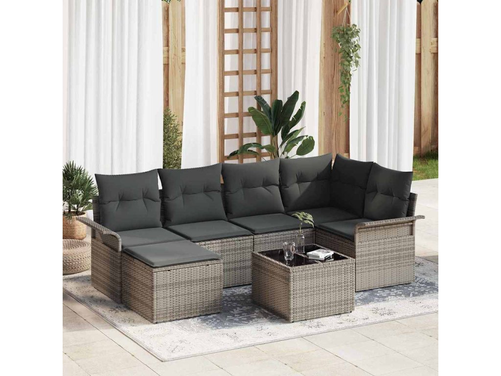 Sada zahradních pohovek s polštářem 7 pcs Šedá polyratan 3345439