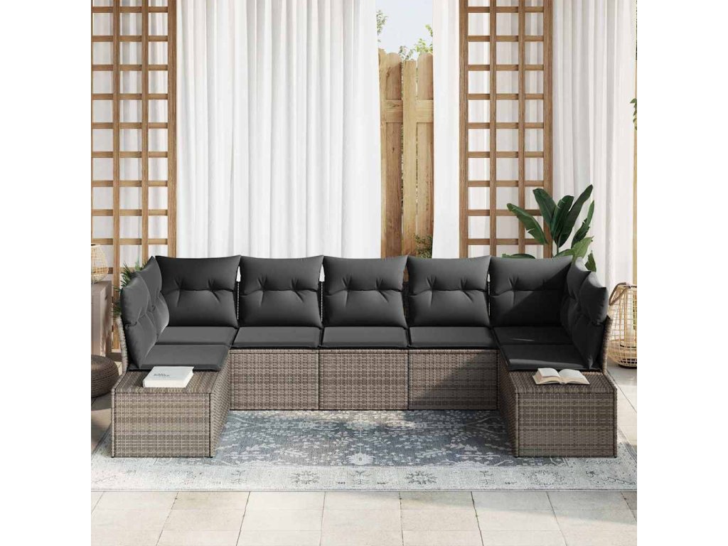 Sada zahradních pohovek s polštářem 7 pcs Šedá polyratan 3347209