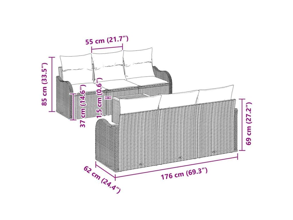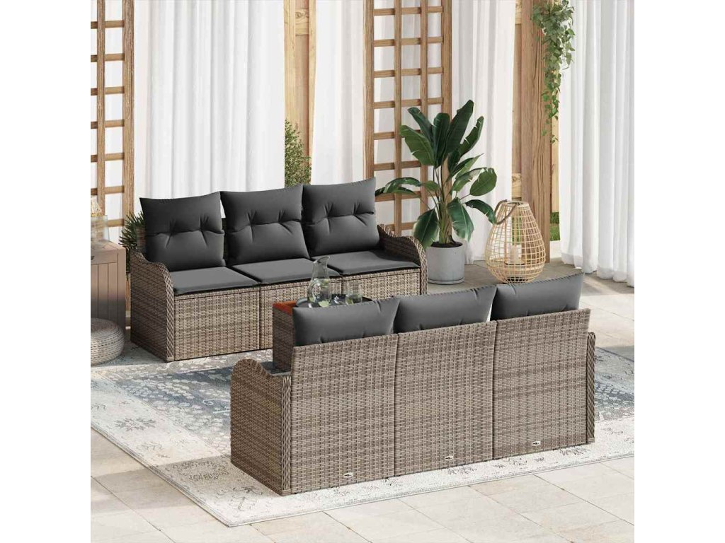 Sada zahradních pohovek s polštářem 7 pcs Šedá polyratan 3347398