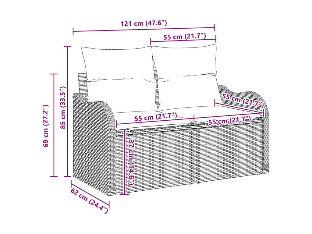 - Zahrnuté komponenty: Tento set obsahuje opěradlo ze strukturovaného poly ratanu pro pohodlné sezení. Odnímatelné polštáře naplněné polyesterovou výplní přidávají další úroveň pohodlí. Sedací polštáře mají zip pro snadné sundání a údržbu. Každý kousek skvěle zapadá do celkového modulárního designu, přizpůsobitelný vašim potřebám.