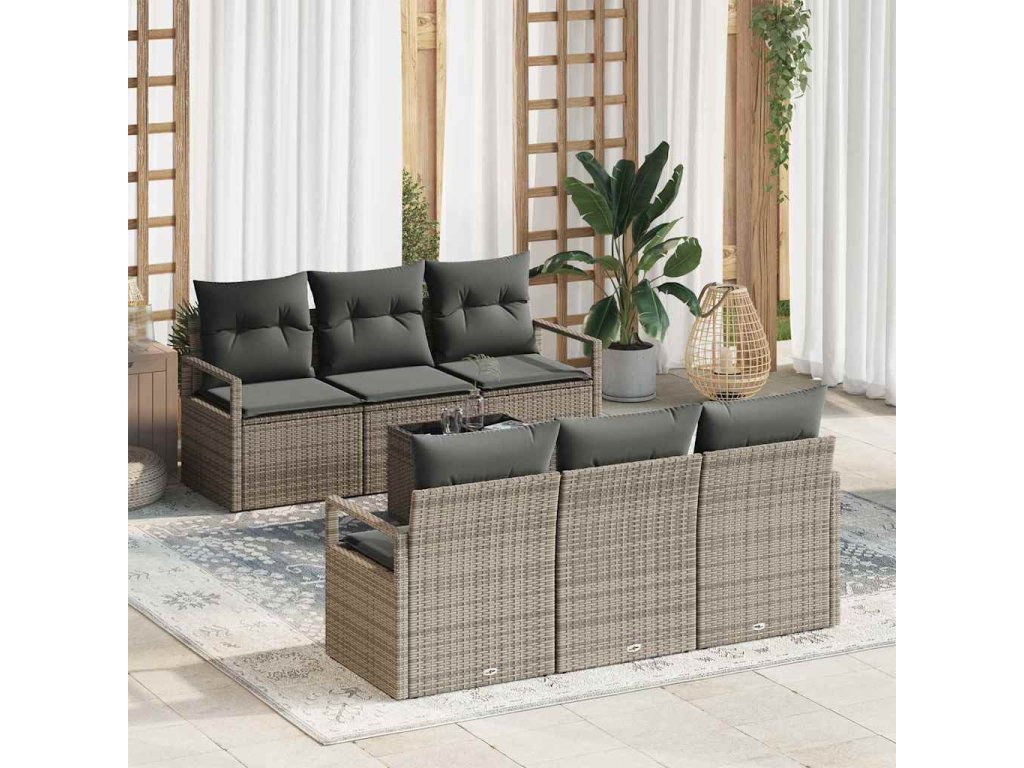 Sada zahradních pohovek s polštářem 7 pcs Šedá polyratan 3354938