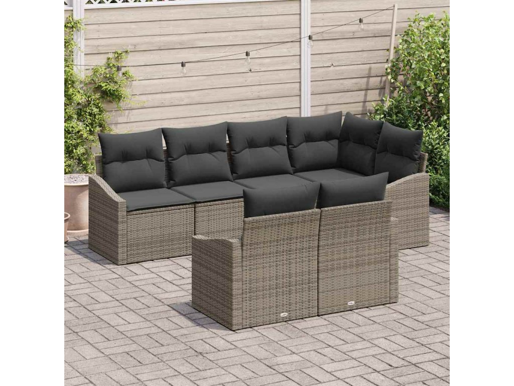 Sada zahradních pohovek s polštářem 7 pcs Šedá polyratan 3355428