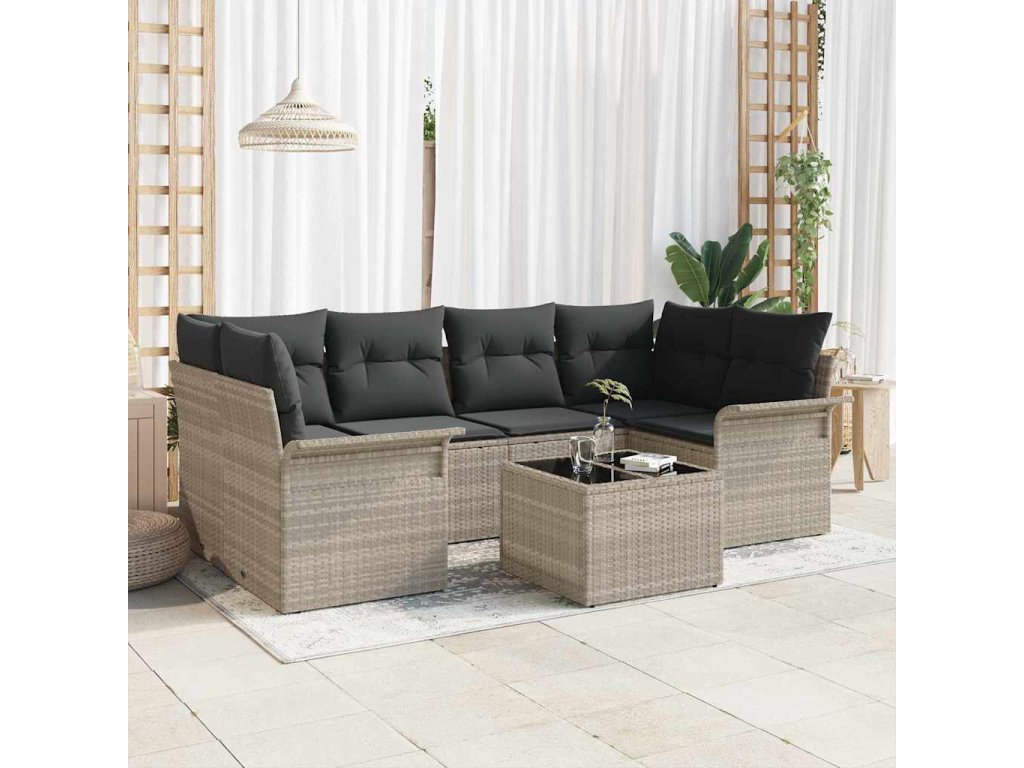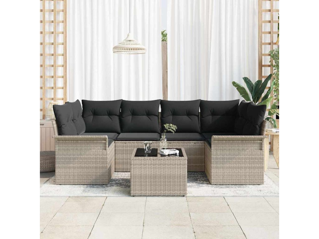 Sada zahradních pohovek s polštářem 7 pcs Světle šedá polyratan 3345262