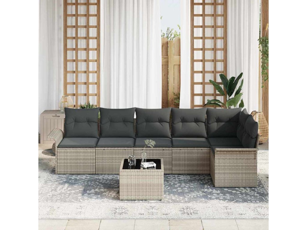 Sada zahradních pohovek s polštářem 7 pcs Světle šedá polyratan 3345392