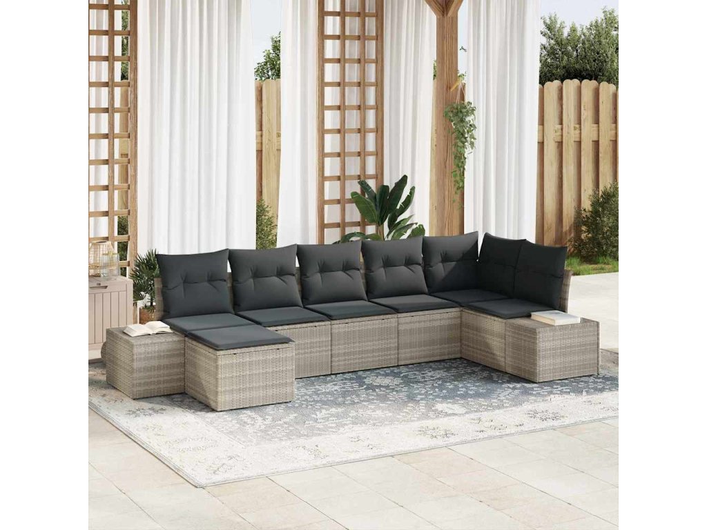 Sada zahradních pohovek s polštářem 7 pcs Světle šedá polyratan 3347152
