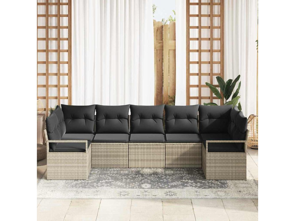 Sada zahradních pohovek s polštářem 7 pcs Světle šedá polyratan 3355201