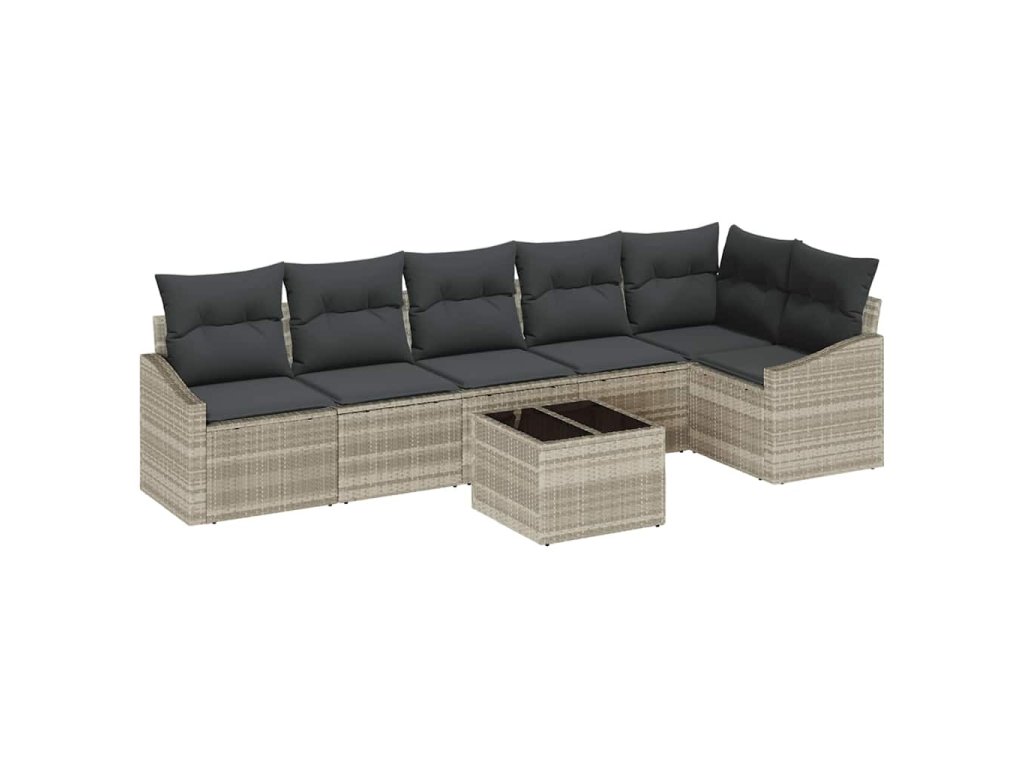 Sada zahradních pohovek s polštářem 7 pcs Světle šedá polyratan 3355421