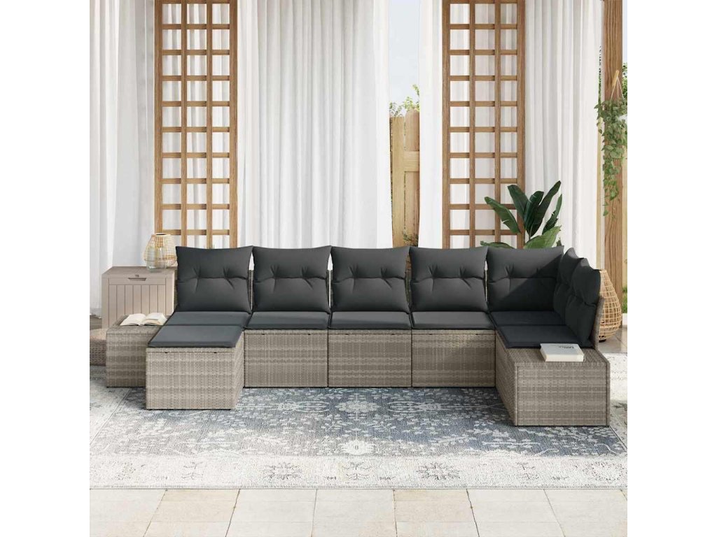 Sada zahradních pohovek s polštářem 7 pcs Světle šedá polyratan 3355821