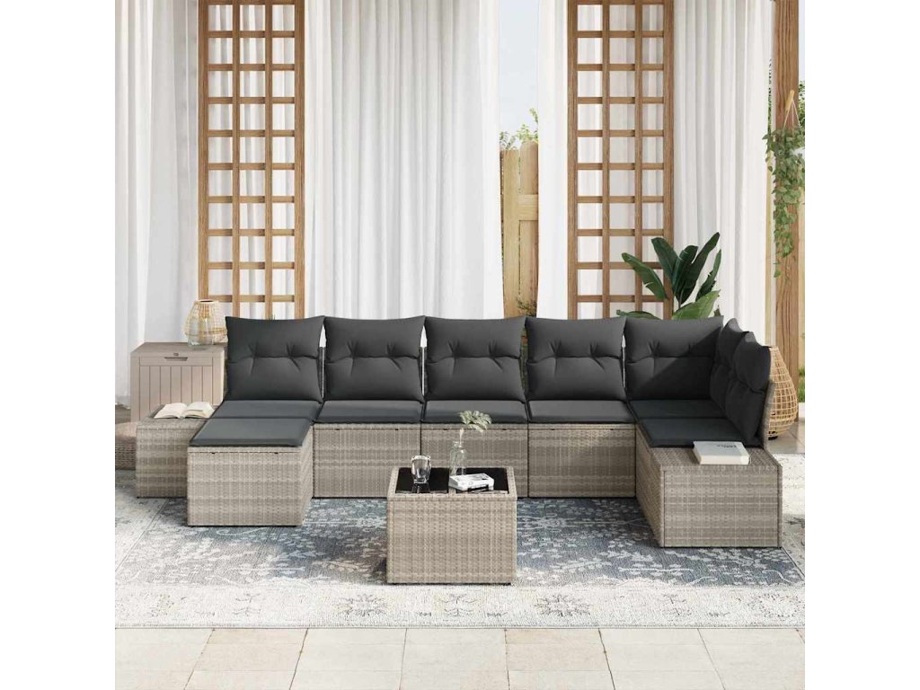 Sada zahradních pohovek s polštářem 7 pcs Světle šedá polyratan 3355831