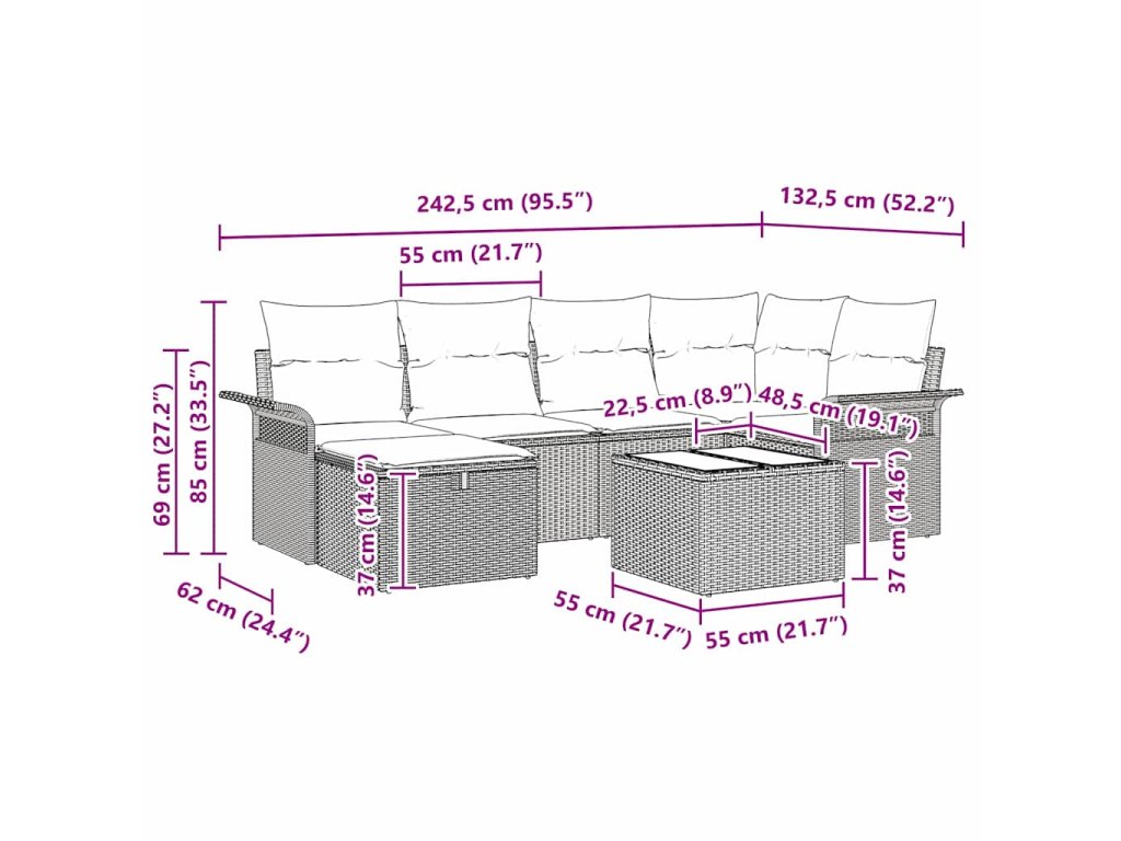 - 6 x Sedací polštář: 55 x 55 cm (DxŠ)