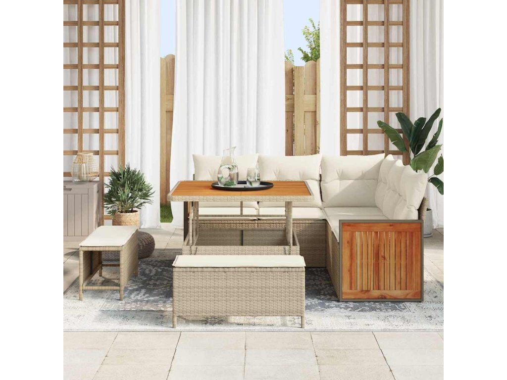 - Design Šetřící Prostor: Tato rohová sada gaučů je perfektní do zahrad a teras s omezeným prostorem. Nabízí modulární flexibilitu, kterou si můžeš přizpůsobit podle sebe. Usporiádání podporuje socializaci, takže je fajn na bavení hostů nebo jen na užívání si klidu.