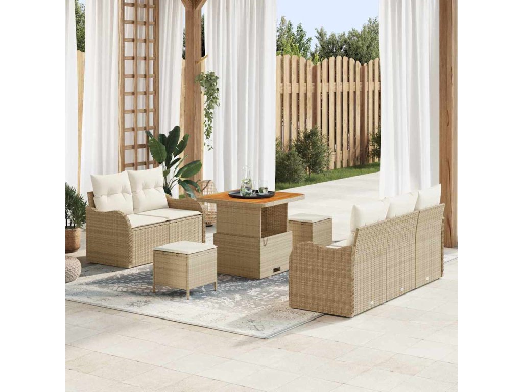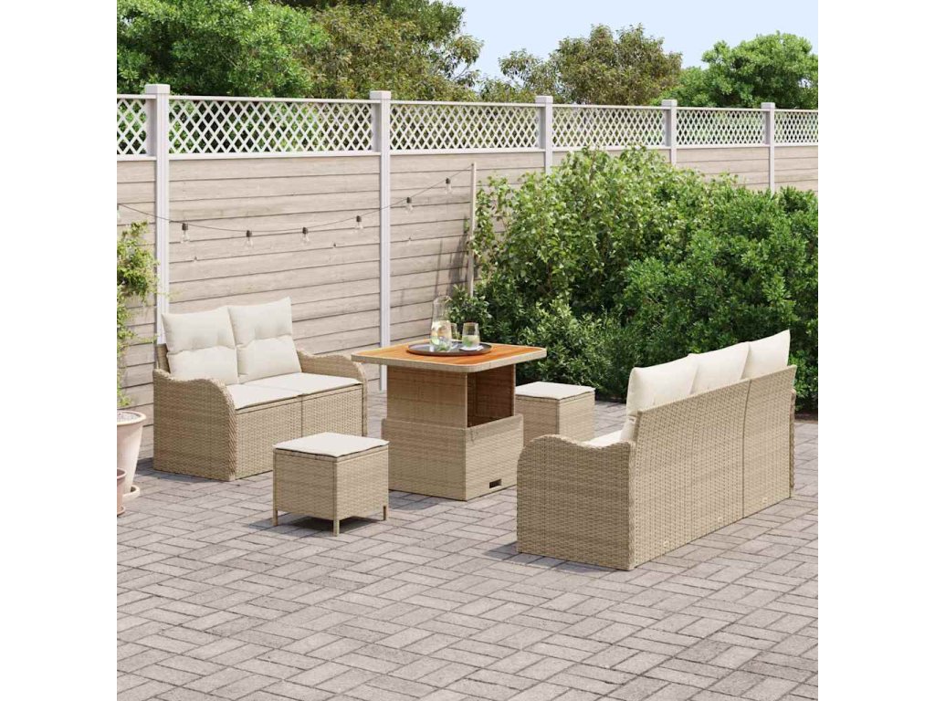 Odolné materiály Vyrobeno z poly ratanu, práškově lakované oceli a masivního akáciového dřeva, tahle sada je navržená tak, aby vypadala skvěle a odolávala počasí. Každý kus je určen pro každodenní používání, aniž by ztratil svůj šarm. Poly ratan a ocel jí dávají sílu, zatímco akáciové dřevo dodává příjemný dotek. Pohodlné komponenty Tato sada obsahuje 4 arm sofas s úložným prostorem, 1 centrální sedák s úložným prostorem, 2 čtvercové stoličky a 1 stůl, a všechny tyhle kousky ti poskytnou pohodlí a praktičnost. Zakřivené opěrky rukou a měkké polštáře z každého posezení dělají příjemný zážitek. Každá část má svůj účel – ať už se jedná o arm sofa s úložným prostorem, nebo stoličky pro extra sezení, je navržena tak, aby byla flexibilní. Chytrý design Nastavitelné nožičky zajistí, že stabilně stojí i na nerovném povrchu, kombinuje funkčnost se stylem. Můžete upravit modulární design na jakoukoli příležitost nebo sezónu, měnit výšky nebo tvořit prostorově úsporná uspořádání, což dělá z této sady ideální volbu pro moderní život. Flexibilní použití Ideální pro zahrady a terasy, tahle sada funguje skvěle ve všech typech venkovních prostor. Umožňuje ti užít si to nejlepší z interiéru venku, ať už pořádáš přátele, nebo si užíváš klidnou chvilku pro sebe. Jednoduchá údržba Aby dlouho vypadala skvěle, zakryj ji, když ji nepoužíváš, aby byla chráněná před živly. Jen uschovej polštáře na suchém místě a pravidelně otírej povrchy, aby bylo všechno čerstvé a příjemné.- Barva: Béžová a krémová