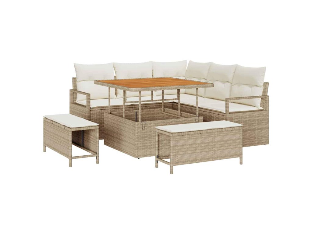 Vysoce kvalitní materiály: Tato sedací souprava z poly ratanu nabízí stylový a odolný povrch, který vydrží venkovní počasí. Rámy z práškově lakované oceli jsou pevné a akáciové dřevo dodává celému designu elegantní nádech. Chytré funkce: S nastavitelnými nožkami je souprava stabilní i na nerovném terénu. Chytré úložné prostory udrží všechny tvoje zahradní věci pohromadě a prostor tak vypadá upraveně a organizovaně. Flexibilní design: Modulární konstrukce ti umožňuje uspořádat ji různými způsoby. Ať už chceš klidné místo na poklábosení nebo velký prostor pro akci, tahle sedací souprava se přizpůsobí tvým potřebám. Připravená na všechny roční období: Určená pro venkovní použití, UV odolné materiály chrání před vyblednutím a opotřebením od slunce, což z ní dělá spolehlivou volbu na slunečné dny venku. Snadná údržba: I když zvládne venkovní podmínky, kryt, když ji nepoužíváš, pomůže udržet ji v dobrém stavu po delší dobu s minimálním úsilím.- Barva: Béžová a krémová