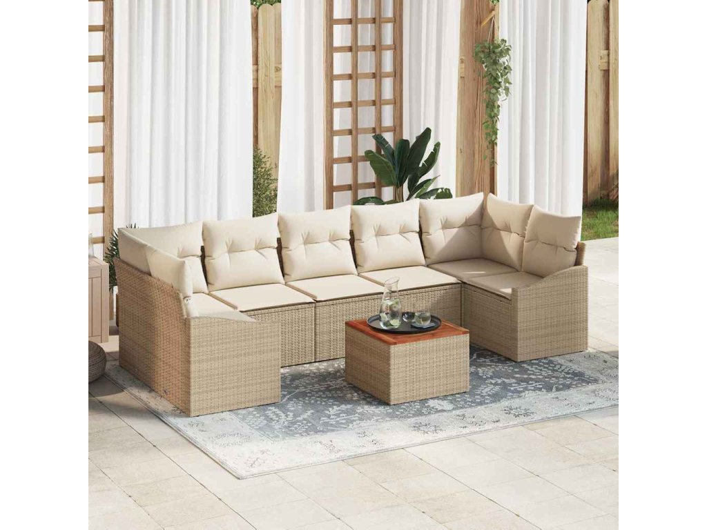 Sada zahradních pohovek s polštářem 8 pcs Béžová Poly ratan 3347799