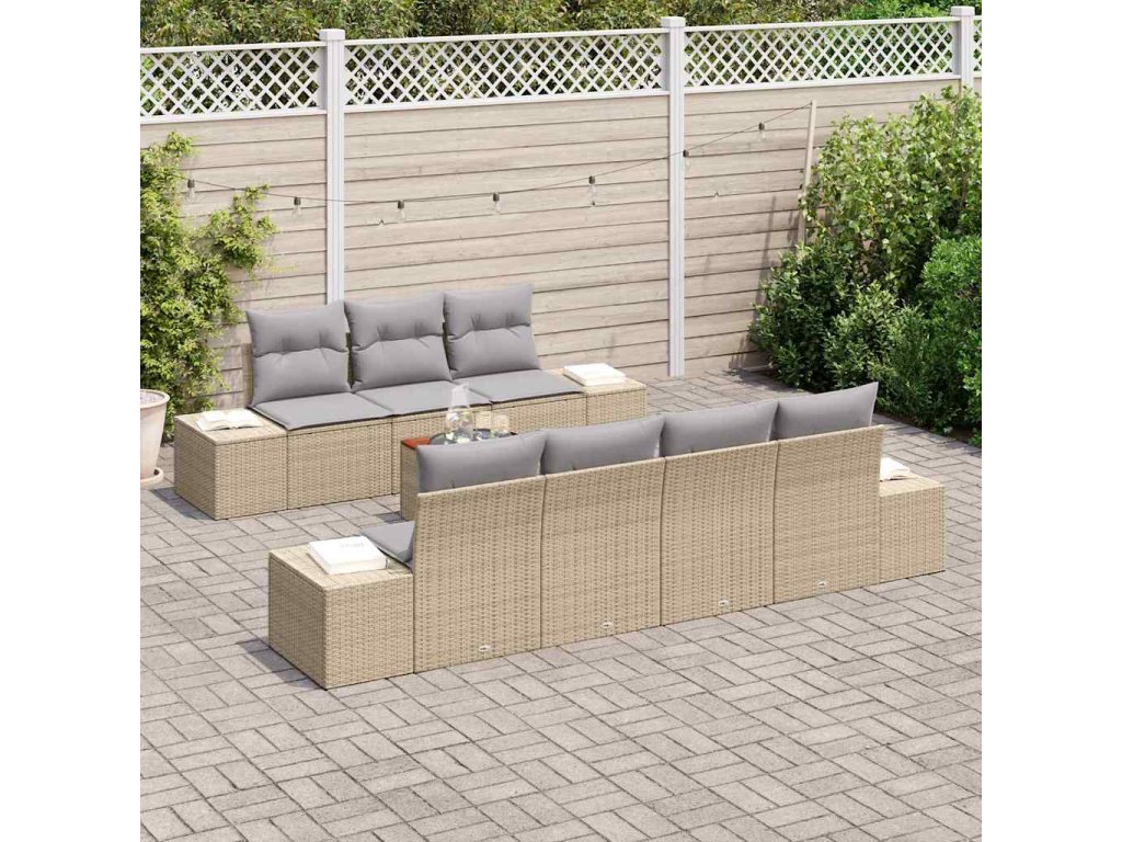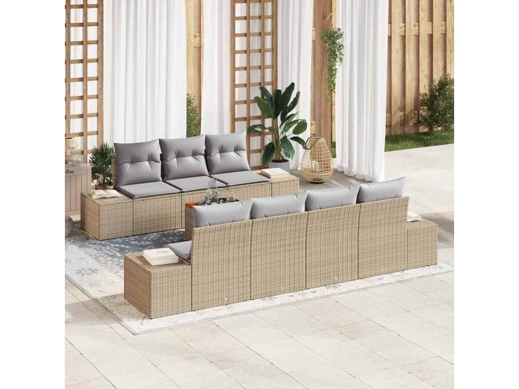 Sada zahradních pohovek s polštářem 8 pcs Béžová Poly ratan 3347917
