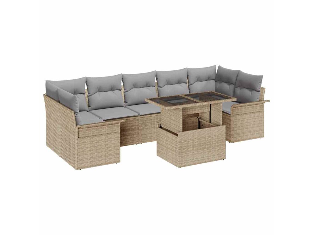 Sada zahradních pohovek s polštářem 8 pcs Béžová Poly ratan 3348236