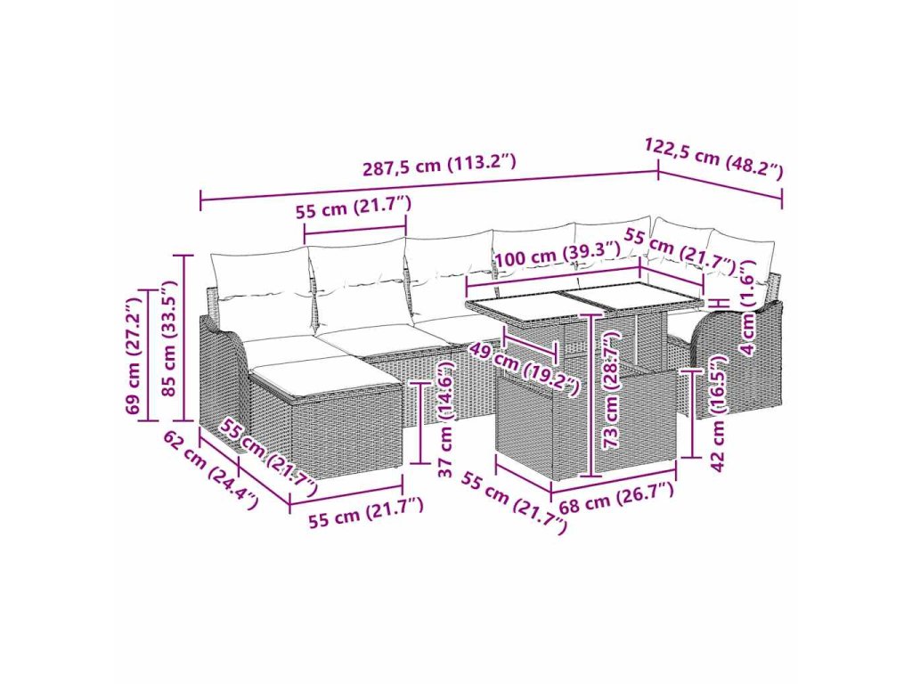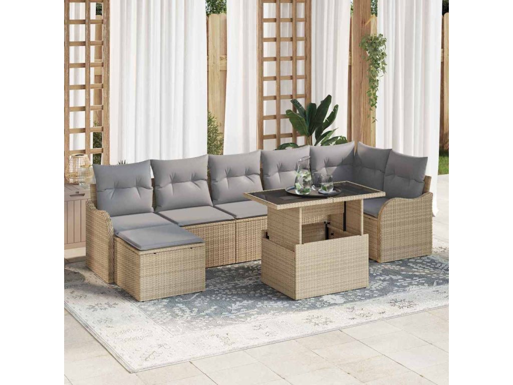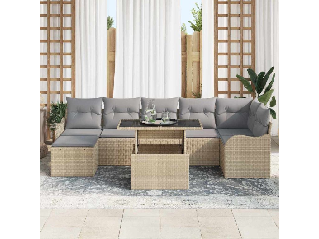 Sada zahradních pohovek s polštářem 8 pcs Béžová Poly ratan 3348506