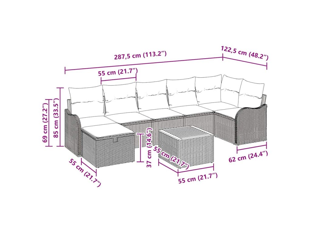 Sada zahradních pohovek s polštářem 8 pcs Béžová Poly ratan 3359491