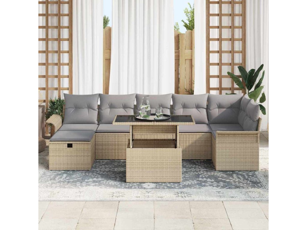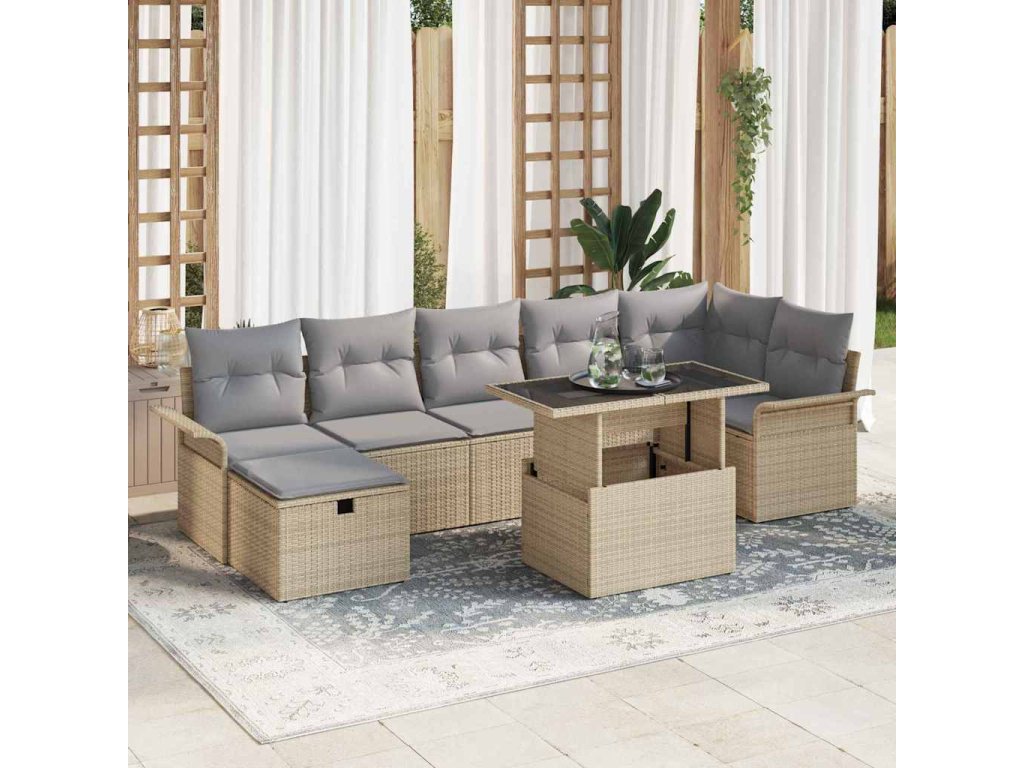 Sada zahradních pohovek s polštářem 8 pcs Béžová Poly ratan 3359687